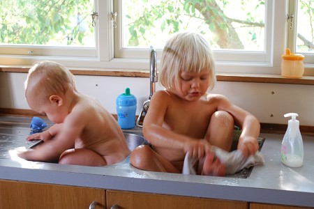 It is very important to her to give me a proper good-bye when I leave for work: put on her shoes, follow me out onto the porch or down the stairs, then three hugs and three kisses, and wave from the porch until I go out of sight behind the neighbours’ hedge. The ceremony slowly gets longer and longer: first it was just three kisses in the kitchen; one day earlier this week she forgot what she was doing and followed me all the way to the corner, at which point we both laughed at her mistake and she ran back, and now she’s wanted to do it that way every morning.