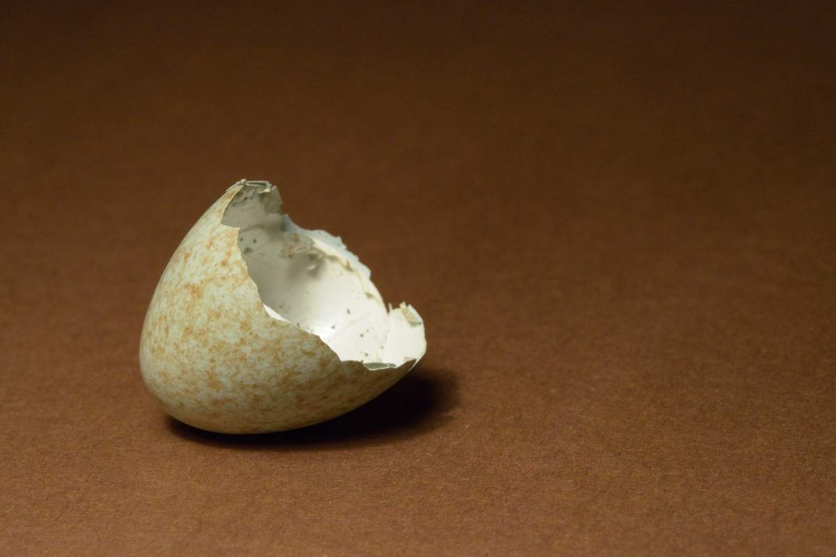 Yesterday Ingrid found another eggshell, on our way home from school. (Here’s the previous one.) This one was a neat half-egg so it had definitely hatched.