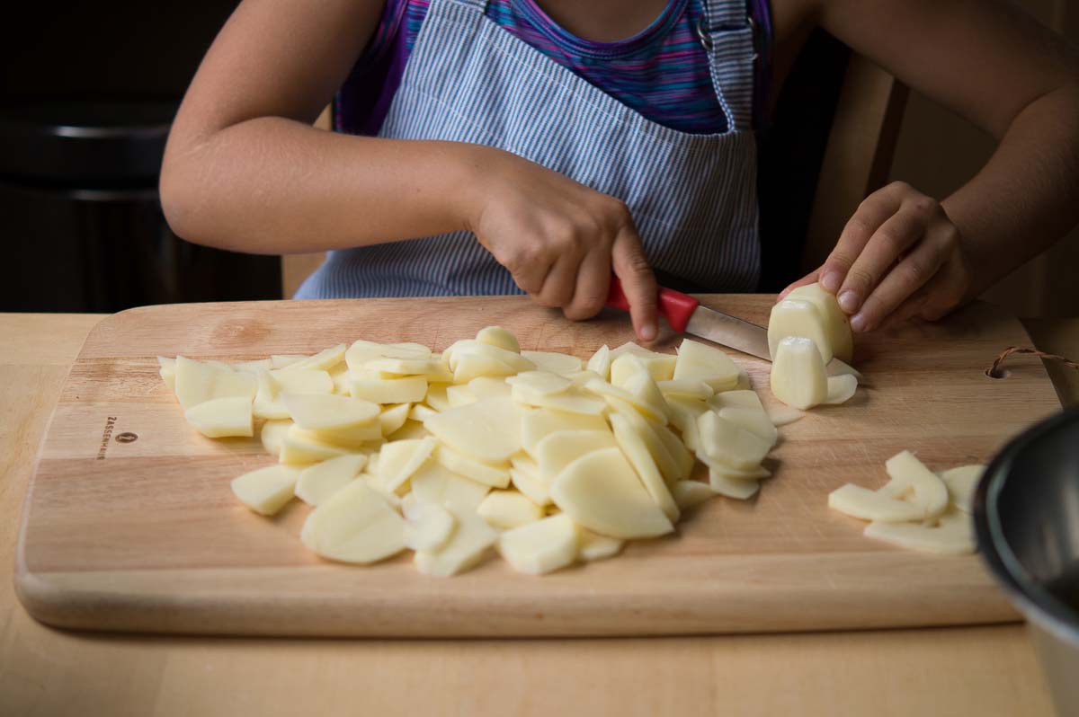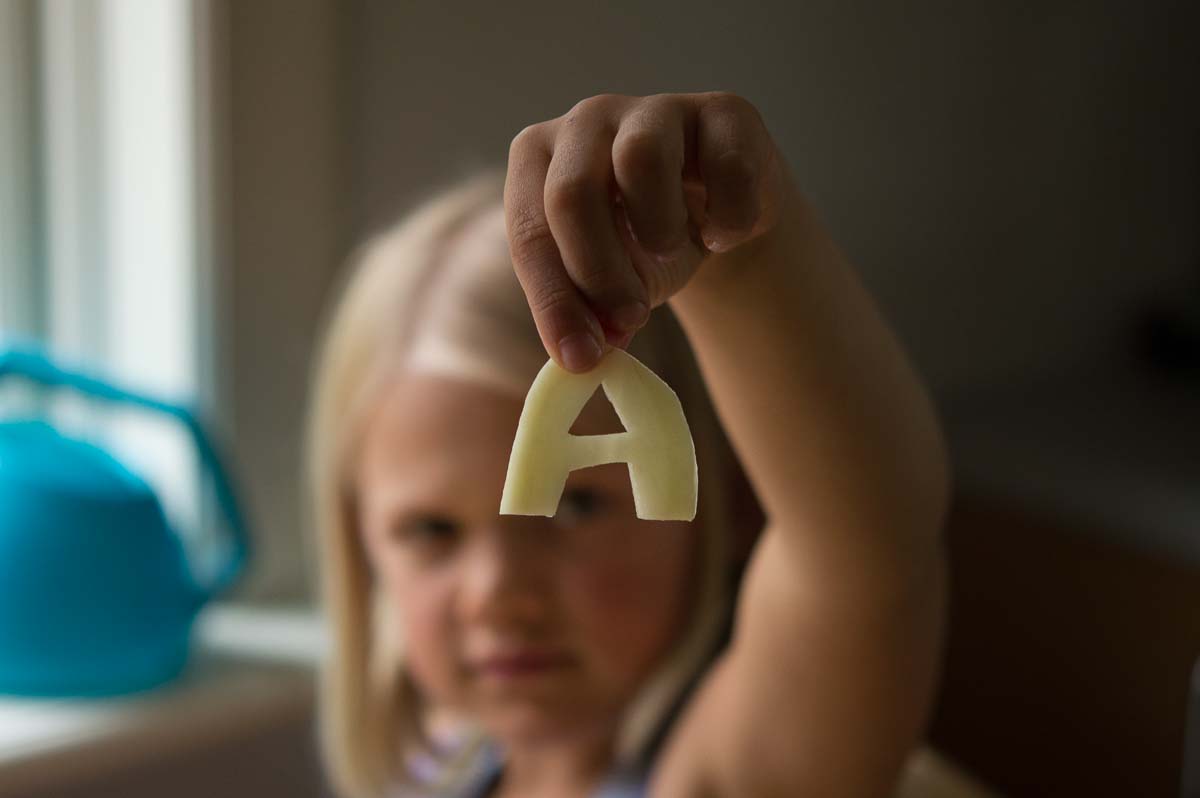 Ingrid likes making potato gratin. It’s about the only dish she can make. And potato gratin is one of Adrian’s absolute favourite foods, so it’s a win-win situation! This time she decorated Adrian’s gratin (which differs from ours because it does not have grated cheese on top) with A-shaped potato pieces.