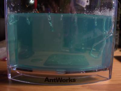 On the whole they seem to be more interested in the walls of the box than in the gel. I’m supposed to let in a bit of air once a week or so, but there’s always a crowd of ants exploring the edges of the lid, so it’s hard to find a time when I can open the box without letting them all out.