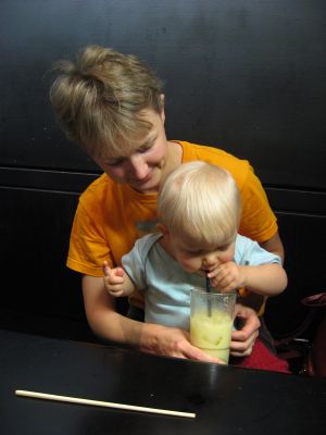 In general Ingrid has become stronger and more coordinated. When we go swimming, she can hold onto the bar so well that I don’t need to support her at all. She likes being swung and spun and thrown up in the air, and bounced on my knees. When I stop, she jumps up and down until we do it again and again. I thought that this kind of activities was more for babies, but Ingrid enjoys them much more now than she did as a baby – she shrieks with laughter.