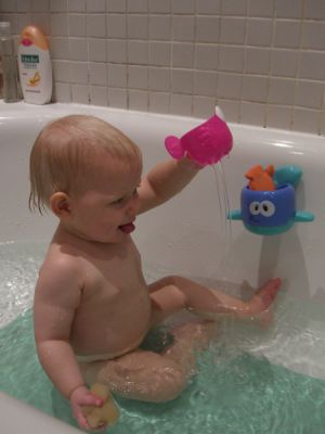 It’s striking (and funny) how ignorant babies are – how little they know about how the world works. Things we take for granted are all new to them, including such basic concepts as “things fall down” and “you can’t grasp water” and “you can put a small thing inside a big thing but not a big thing inside a small thing”. It’s fascinating to see Ingrid learn this kind of things.