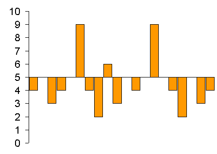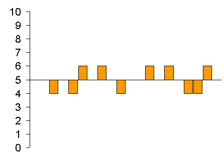This is what a childless / child-free adult’s happiness levels might look like over some arbitrary time period unmarked by any major life events: