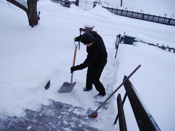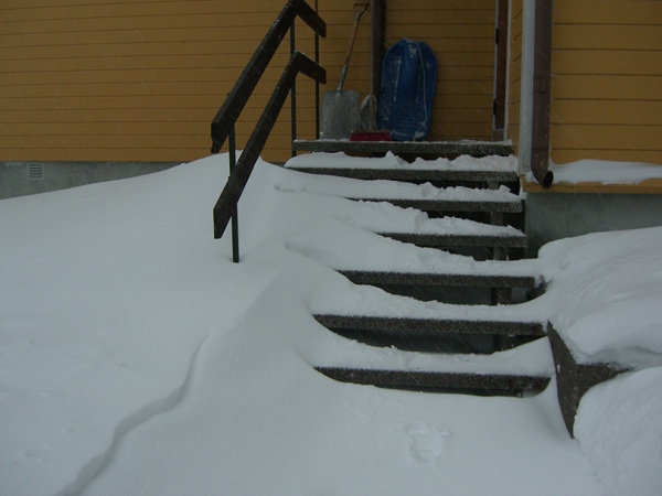 Well we got snow all right. Here’s what our stairs looked like when Eric had shoveled the top one, this morning at 8.30: