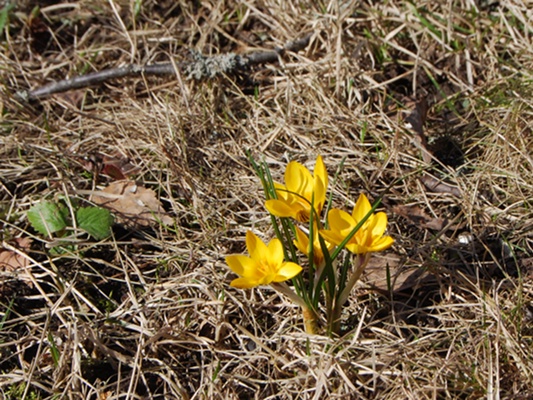 While there are still patches of snow here and there in the garden (and a huge heap of it on the north side, where Eric dumped the snow from the roof) the crocuses are already blooming, the scillas are well underway, and in the warmest and sunniest spot, I spotted a hyacinth blossom.