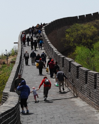 Just at dusk we walked across to Coal Hill, climbed the hill and got a panoramic view of the city. To the south, the yellow roofs of the Forbidden City; elsewhere a very green and relatively flat city centre (although hills were visible further off). And a very large city, of course.