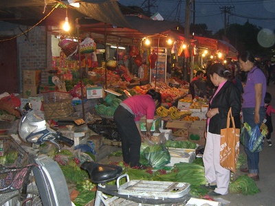 After lunch we checked into our hotel. Some people in the group then went for a walk around the neighbourhood; I slept instead. Then, dinner and another little walk along some local street markets. The weather is warm this time of the year and the city is crowded, so quite a lot of life seems to take place in the streets: vegetable and fruit stalls, raw fish and meat, noodles, sidewalk restaurants, card games, just hanging out, etc. It reminded me of the residential back streets in Egypt, except that this was a lot cleaner. I wonder how they take care of their grocery shopping in winter.
