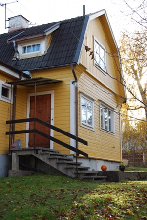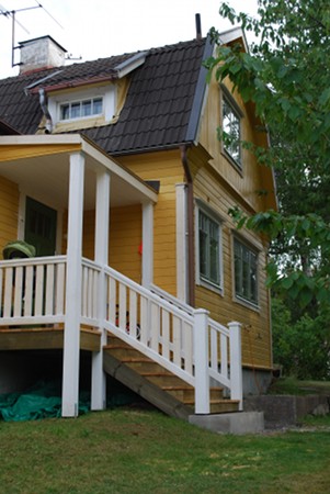 Now we have barred the bottom of the stairs, using a stylish solution consisting of one chinup bar and one shower curtain bar. I don’t really worry about him losing his balance or not being able to climb – but he hasn’t yet learned that the floor is not always there behind him, so he could decide halfway up that it’s time to sit down, and sit down on thin air.