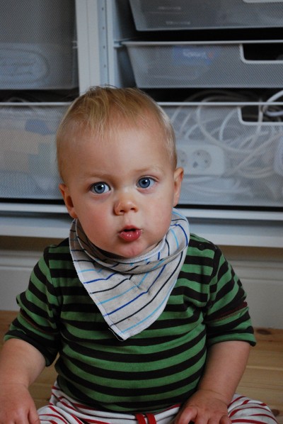 We’ve also started mashing our food for him, which we’ve never done before, just so he can eat it with a spoon. Sometimes mixing our food with some binding agent also works, e.g. some tomato paste to make the rice stick together better. He isn’t interested in eating squishy gooey food with his hands. And he is by now familiar with both spoons and bowls so he no longer turns the bowl upside down to look at it from all angles. On the whole both he and his surroundings are often surprisingly clean after a meal – except for the back of his head, because he often touches it with his hands.