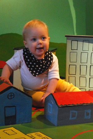 In general we haven’t had to child-proof much at all. He is, on the whole, co-operative and sensible. He knows that the knife block is forbidden, and that he is not allowed to touch pots and pans on the stove. He knows the meaning of “no” and of the index finger held up in warning, and listens to them – and confirms his understanding by holding up his own index finger. When he is unsure about whether an object is safe/allowed or not, he looks questioningly at us. Other times he doesn’t, and we take away the forbidden object, and he cries and sounds heart-broken and lies down and rests his head on his floor in dejection.