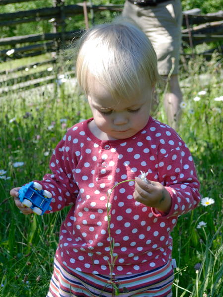 Word of the month: min!, “mine”, meaning “I want that thing”. This leads to occasional minor fights between Adrian and Ingrid (when that thing is the toy that Ingrid just picked up) and between Adrian and myself (when that thing is a sharp knife or the book I’m reading). But he is usually willing to be redirected towards some acceptable alternative.