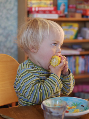 Ingrid was the oldest kid in her group at nursery; Adrian is almost the youngest, so he has many more kids to learn from. It’s funny to hear what different phrases he picks up from them and the teachers. From the kids, he has learned visa en grej (“show you something”), sluta nu (“stop it”), min tur (“my turn”). From the carers he has learned jag hjälper dig (“I’ll help you”), vill du ha (“do you want this one”).
