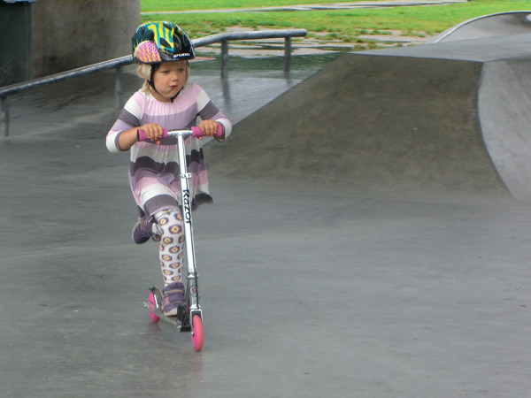 When the school term began, her swim school also started up again. It turns out that she can actually swim already: she can do a passable back stroke from one end of the 10-metre pool to the other, without stopping. I don’t think she could do that at the end of the spring term, and she hasn’t been practising during the summer, so I don’t know where that came from. And I don’t think she realized it herself: she didn’t seem to think that swimming on her back counted for real.