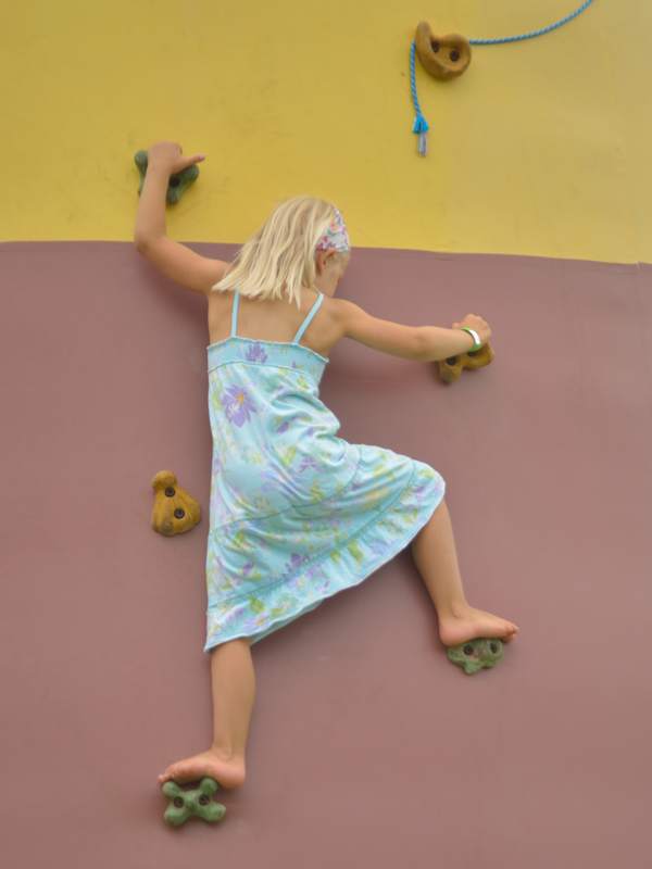 She’s also quite fearless. Speed, heights, water, you name it: she dares more than many others at her age. At the beach she goes deeper and deeper until the water reaches her chin and she is almost on the tips of her toes, and still she tries to go further. At any playground climbing structure she never stops until she’s at the top. At the adventure park in Tartu she never even seemed to notice the height, or consider being cautious about it. At driving tracks etc she always looks for the fast cars and tries to overtake any other kids.