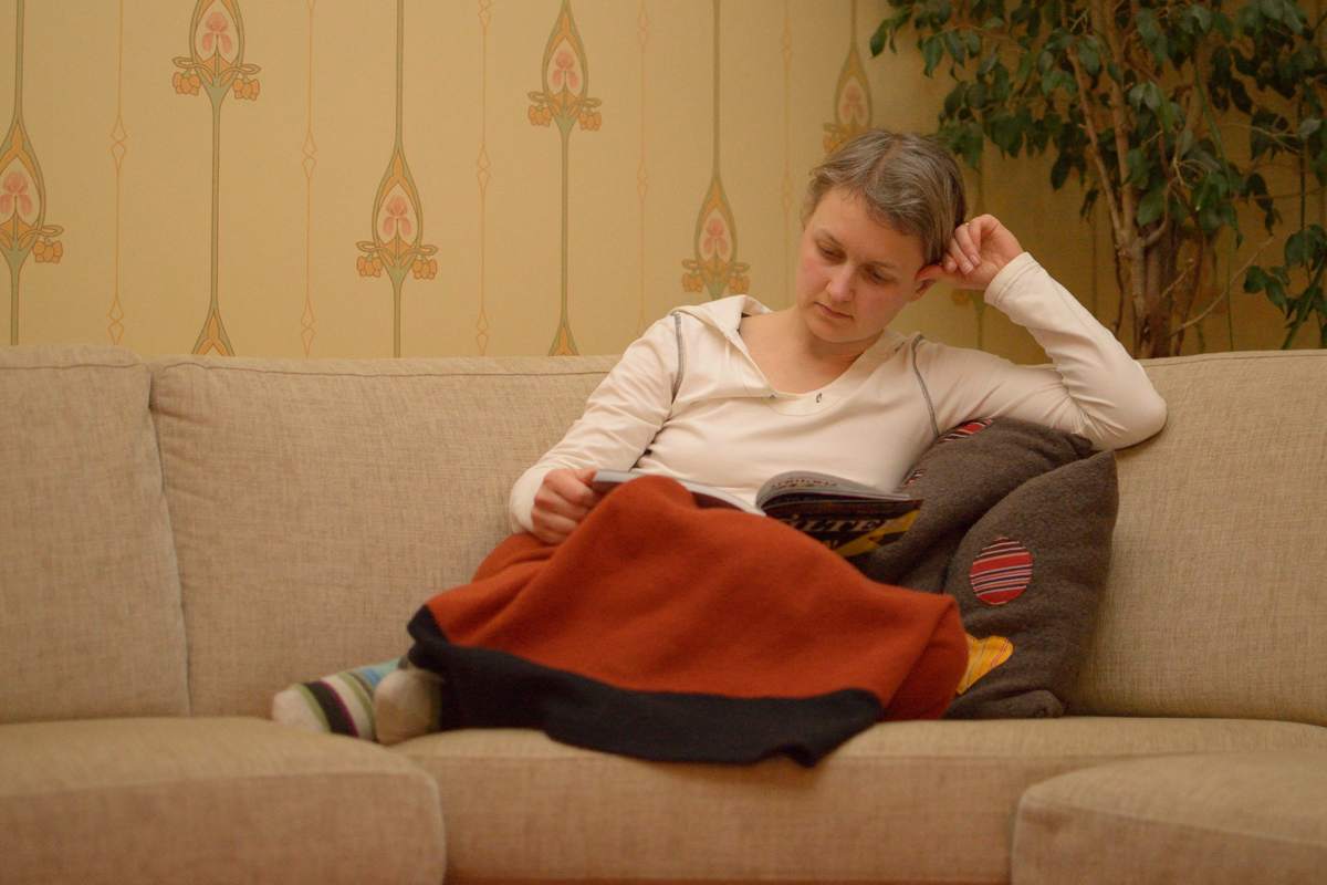 This is me doing what I would have been doing if I had not been taking this month’s self-portrait: reading.