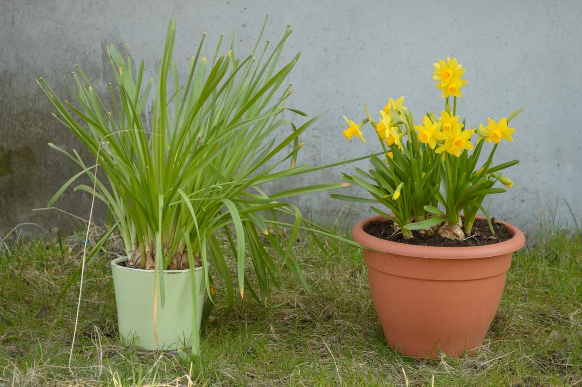 The daffodils that stood outdoors got wind and shade and a good dose of snow. And yet they are all still flowering, and there are still new buds coming up. The leaves are about a third as tall compared to the other pot, but much thicker and fleshier. The whole plant just looks stronger and sturdier.