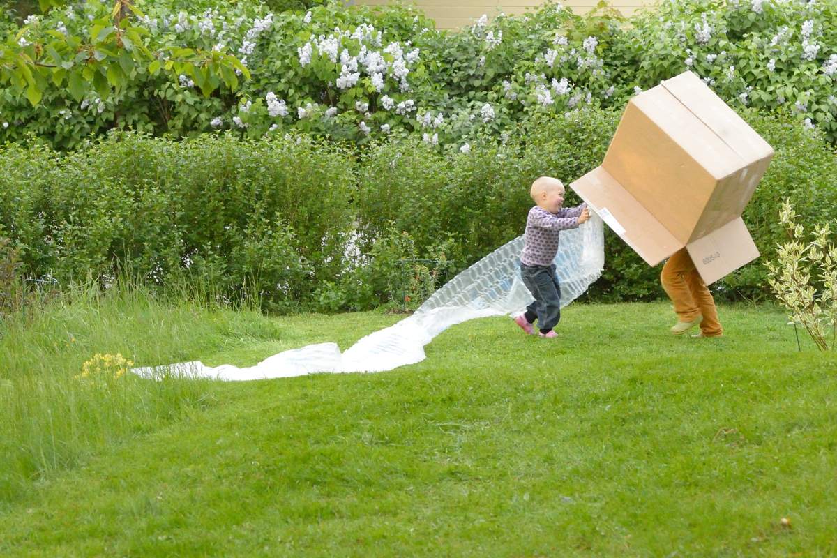 Favourite plaything: Lengths of plastic pipe (left over from when I built bird netting frames for our planter boxes). One large cardboard box. Lego.