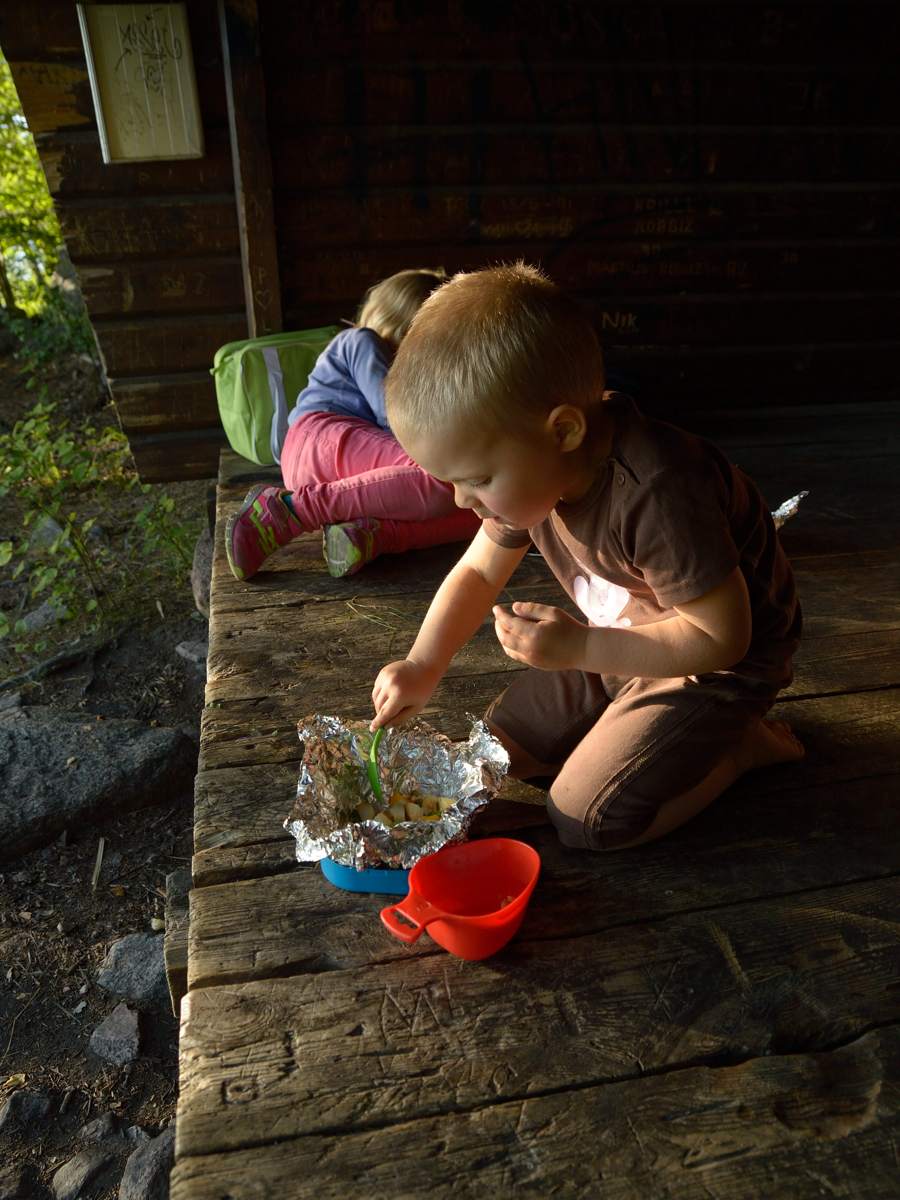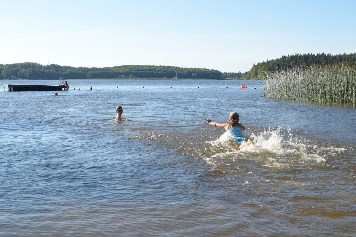 Well… sort of. Since it’s Adrian’s first time and Ingrid’s second (and the first was so long ago that she doesn’t even remember it), we went for a very civilised camping experience rather than anything resembling real wilderness. We camped at a nature park in Ängsjö, just outside Stockholm. One of its major benefits is that there’s stuff for the kids to do: the nature park has a beach, a wooden fort and an adventure trail, etc.