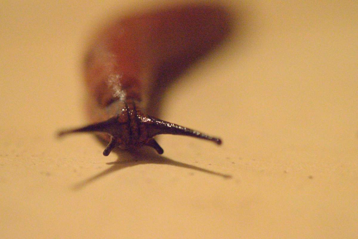 Yesterday evening one of the killer slugs somehow found its way into our house. How, is a mystery. I doubt it came all the way up the stairs and in through the door. I also cannot see it grabbing hold of a shoe or a bag and hitching a ride, and then letting go just in time.