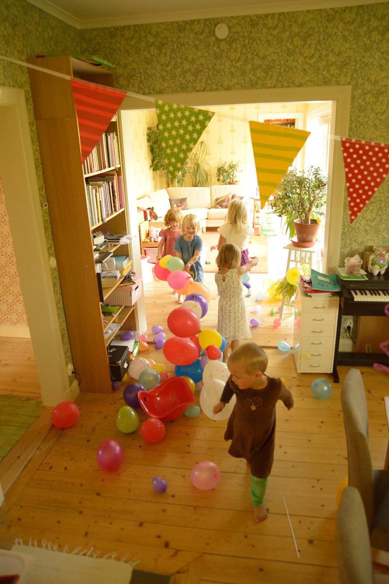 Adrian’s birthday party. I had bought balloons for decoration. Adrian loved them so we blew up a lot more than planned, in all sorts of shapes, sizes and colours. The kids played with them, and finally popped them all with the bamboo skewers we had used for lunch.