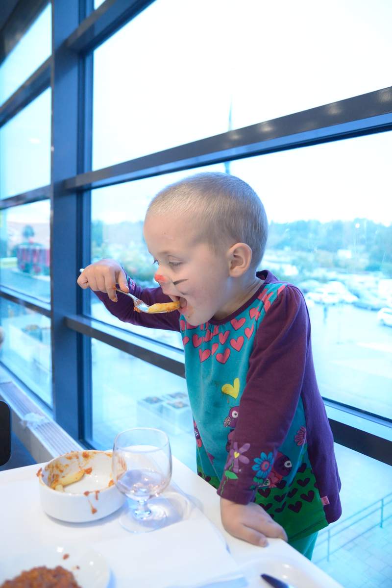 Adrian and I took a trip to IKEA this afternoon, since both kids have been asking for “fluffy blankets like you have”, i.e. duvets. We also ate at the IKEA restaurant. Sitting still during the meal was not a viable option; somehow standing (relatively) still was easier.