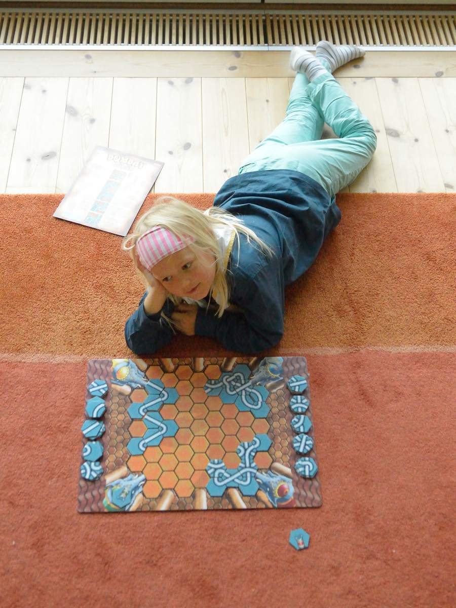 Note the different styles of play. The orderly zig-zags at the left of the game board belong to Adrian; the curlicues are mine and Ingrid’s.