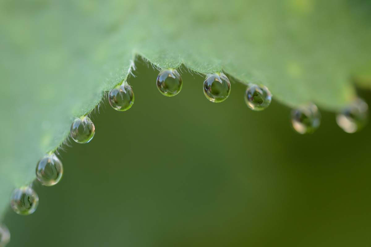 Alchemilla mollis, Lady’s mantle, is called “dew mantle” in Swedish.