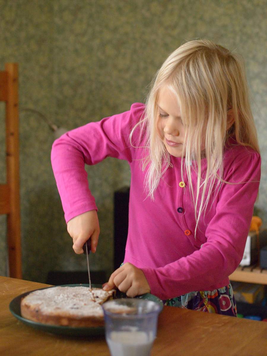 Ingrid was bored and came up with the idea of baking a cake. She didn’t want to follow a recipe, though, because then baking would have become work instead of play. Instead she made what she called a hittepĂ„-kaka, a made-up cake.