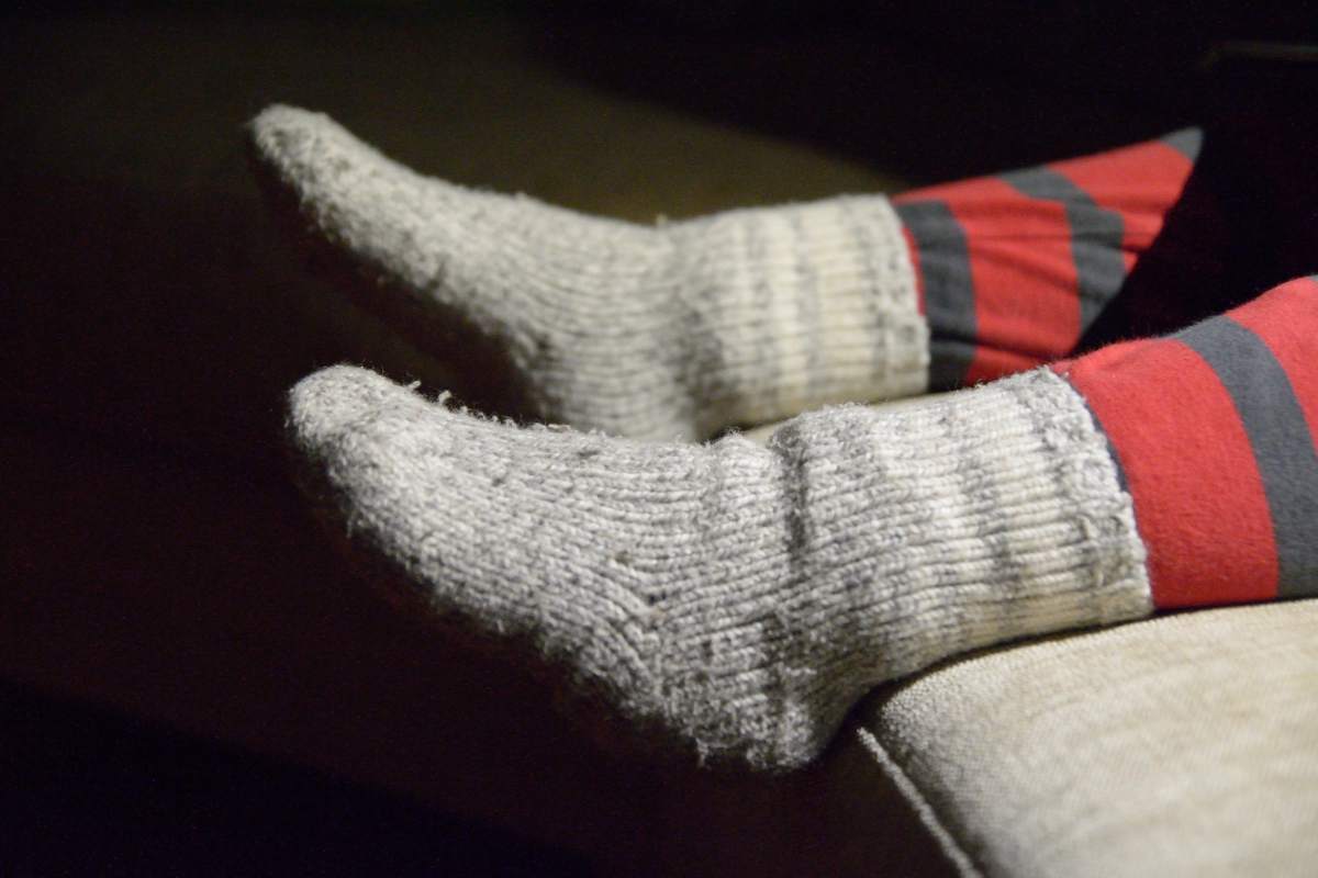 The sock and slipper season has truly begun. Eric and I start off with woollen socks and then switch to sheepskin slippers when it gets colder. Ingrid doesn’t really need either but sometimes likes to wear pink slippers for fun. Adrian can’t make up his mind – sometimes he wears slippers, sometimes he’s barefoot, and today he decided he really liked the feeling of woollen socks.