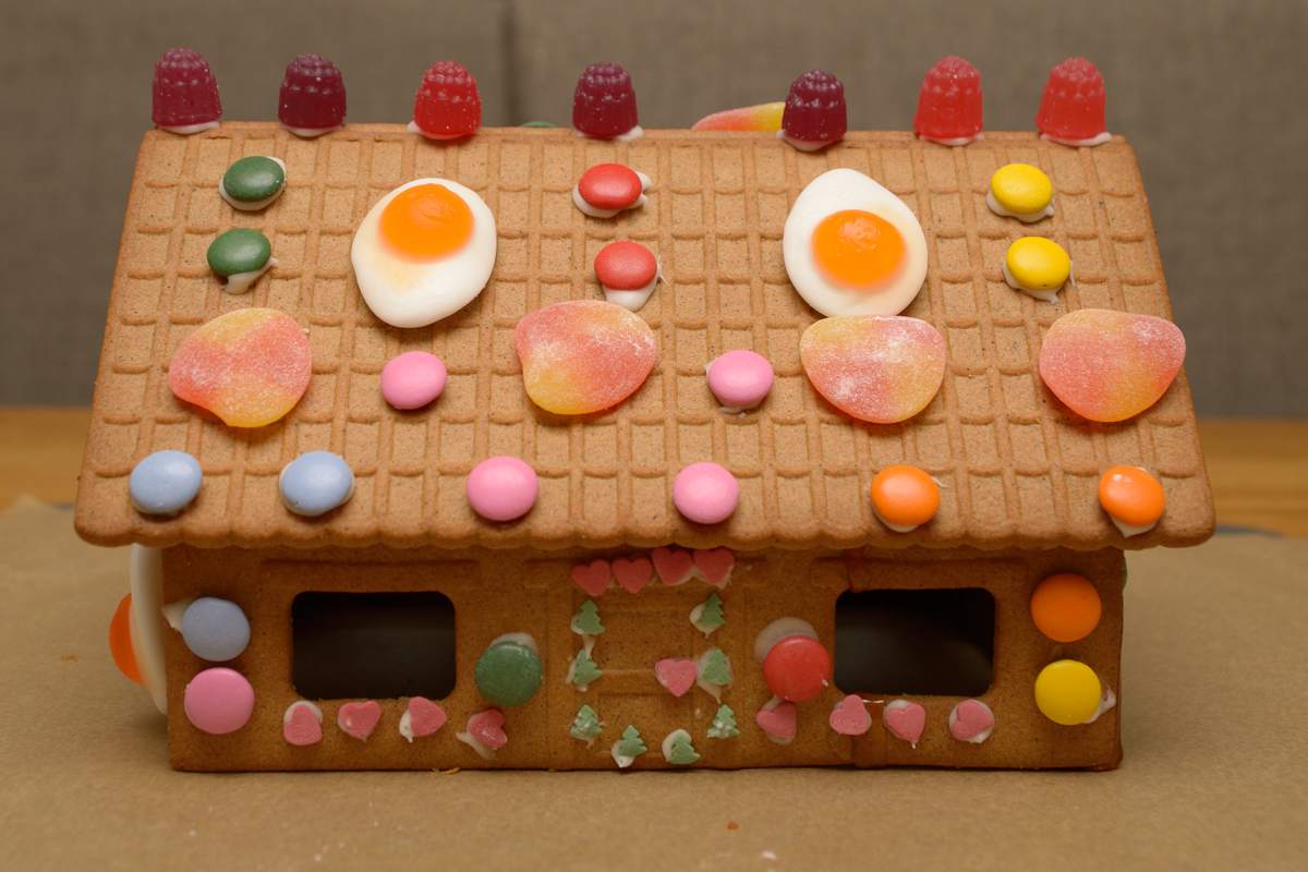 We made a gingerbread house this weekend. Well, we actually cheated a bit and bought a kit with house pieces. Eric assembled it, and the kids and I decorated it with candy.