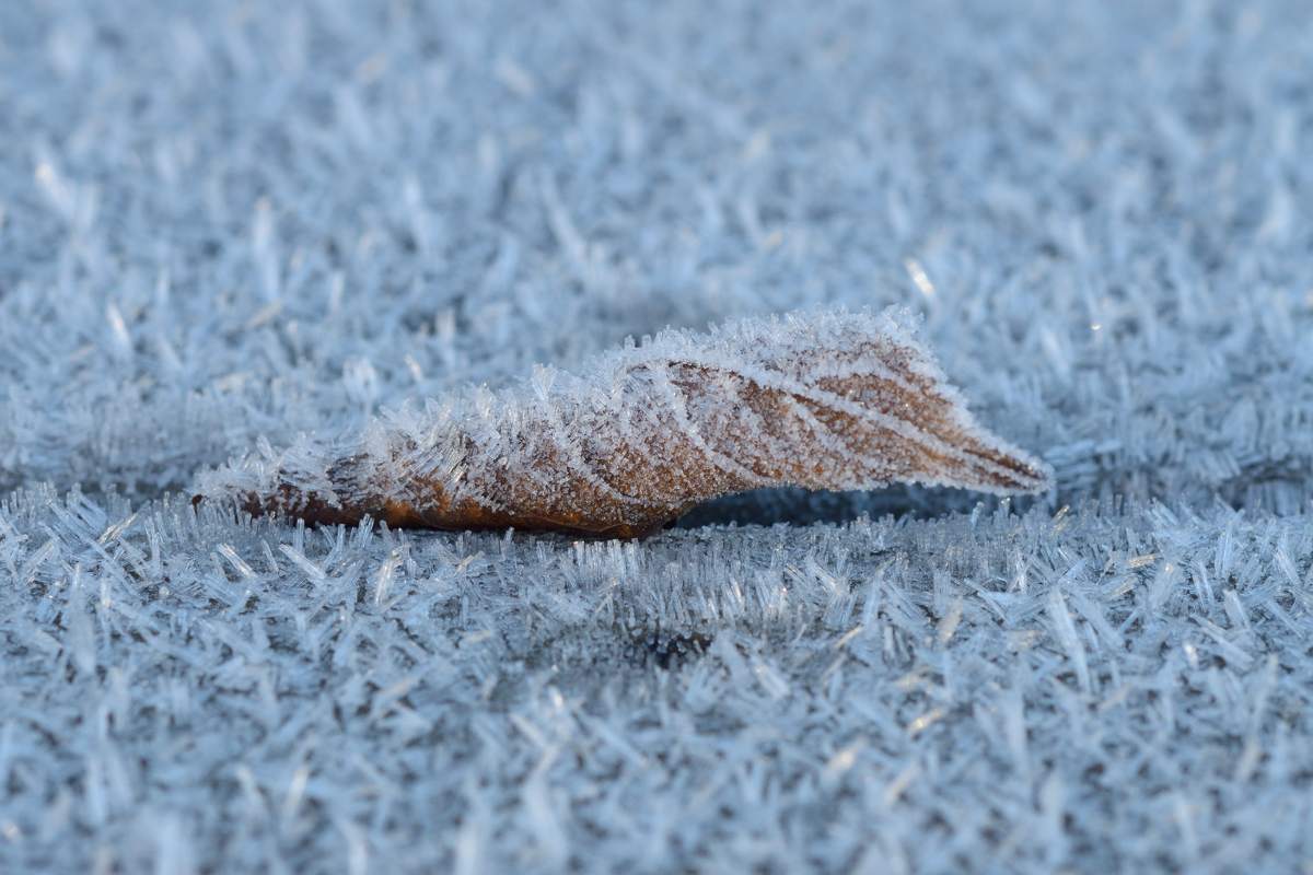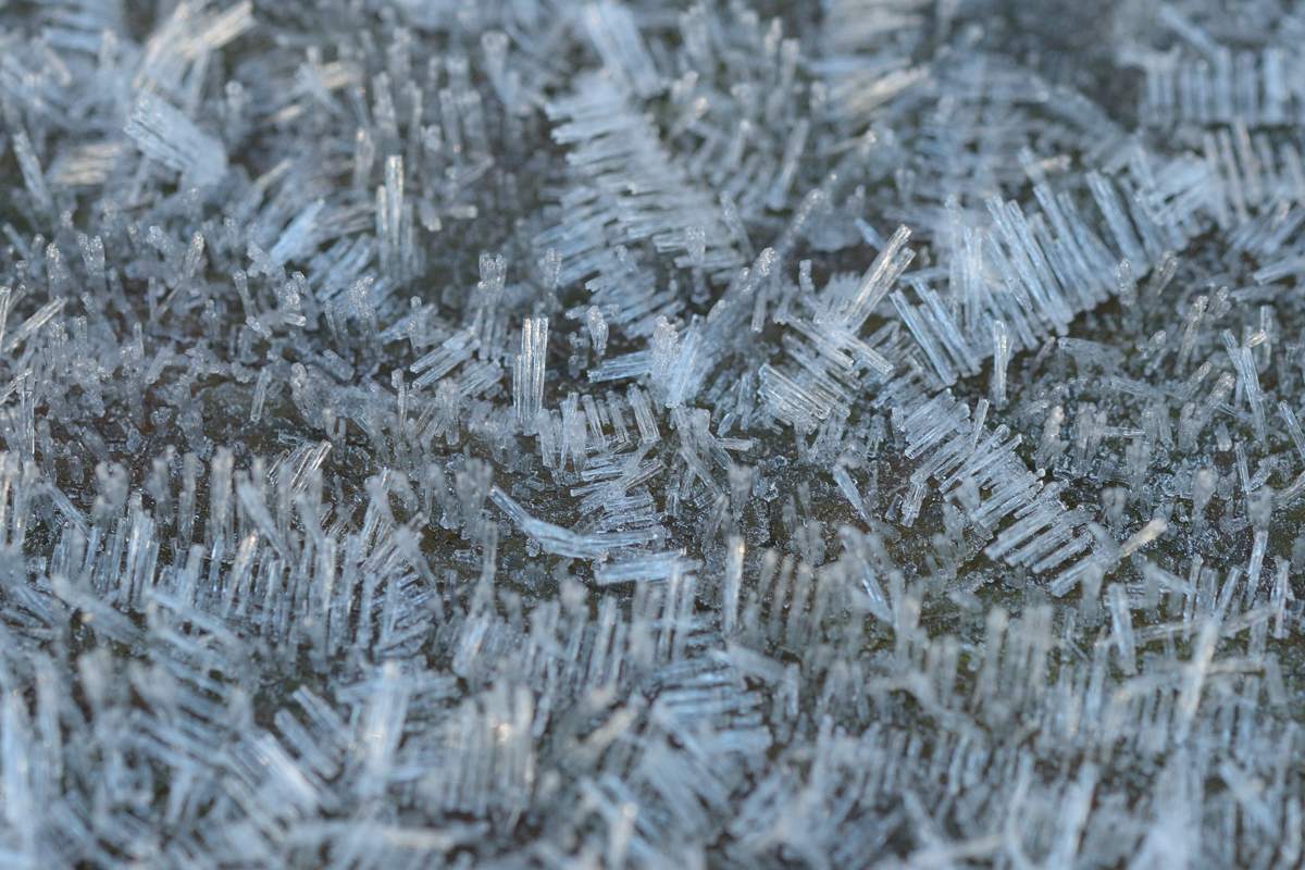 We didn’t get a white Christmas, but we did get a frosty one. Compared to the weather we had during most of November and December (cloudy, and a few degrees above freezing) it felt pretty Christmas-y. There were even several hours of sunlight during the day, and during a few brief moments the sun actually cleared the neighbours’ house and reached our garden. I used those to photograph funky frost formations on our wooden deck.