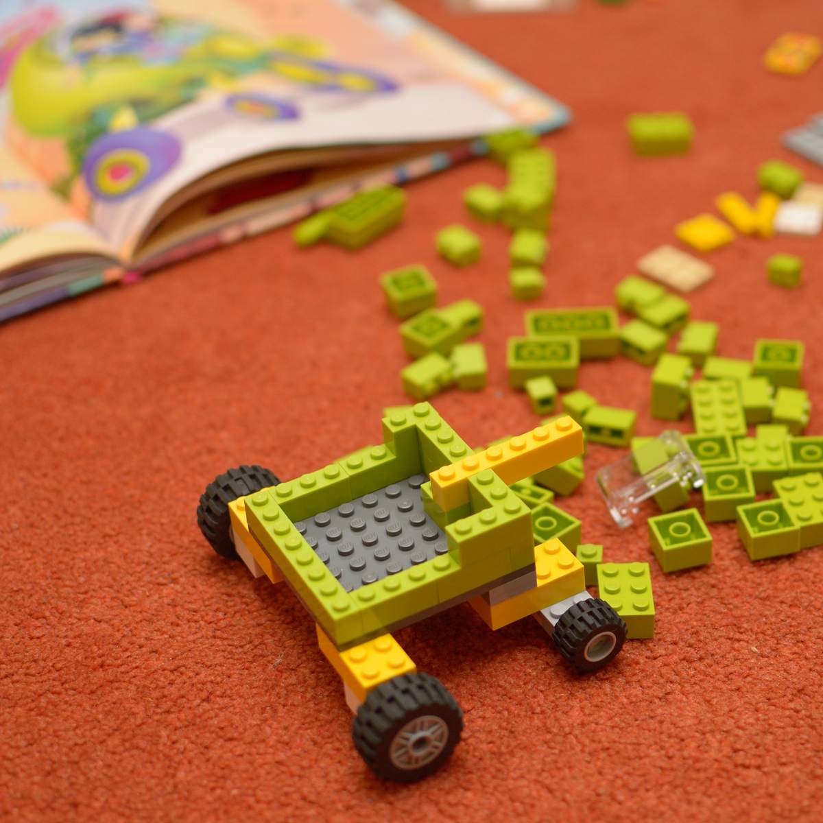 Not at all favourite activity: picking up after her. She just never remembers, so she leaves a trail of small objects behind her – pens and drawing pads, hair bands, Kalle Anka issues, books etc.