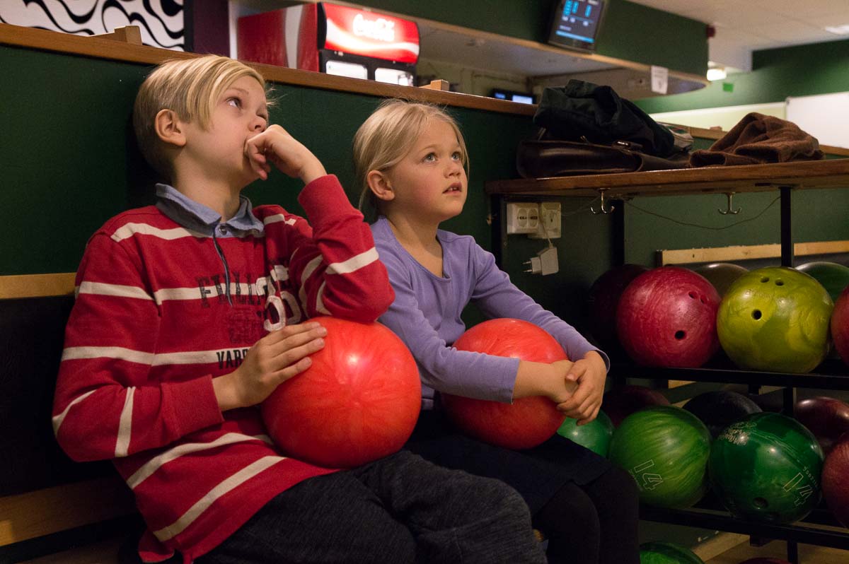 We went bowling today, together with one of Eric’s sisters and her son. Here we have Ingrid and her cousin watching the scoreboard.