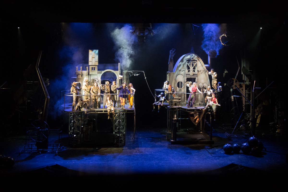 This was Ronja with a steampunk flavour. A dazzling show with spectacular costumes, smoke and thunder, dance and acrobatics and two DJs delivering wild music – and yet well balanced so the effects never stole the attention from Ronja and her story. Spellbinding for both Ingrid and myself.