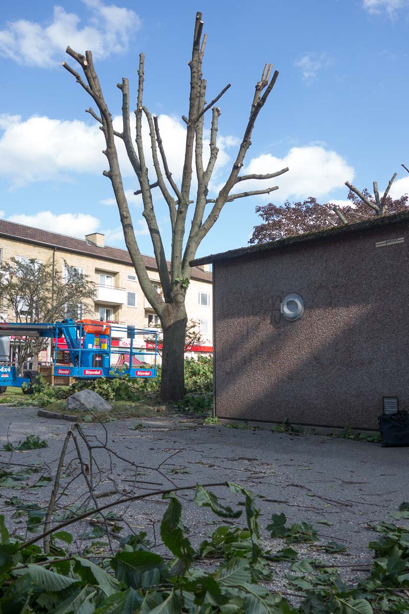 Beautiful maples mutilated in central Spånga.