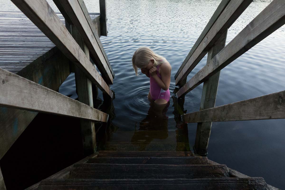 A late night swim in a small, quiet lake. Just us two at the entire lake.