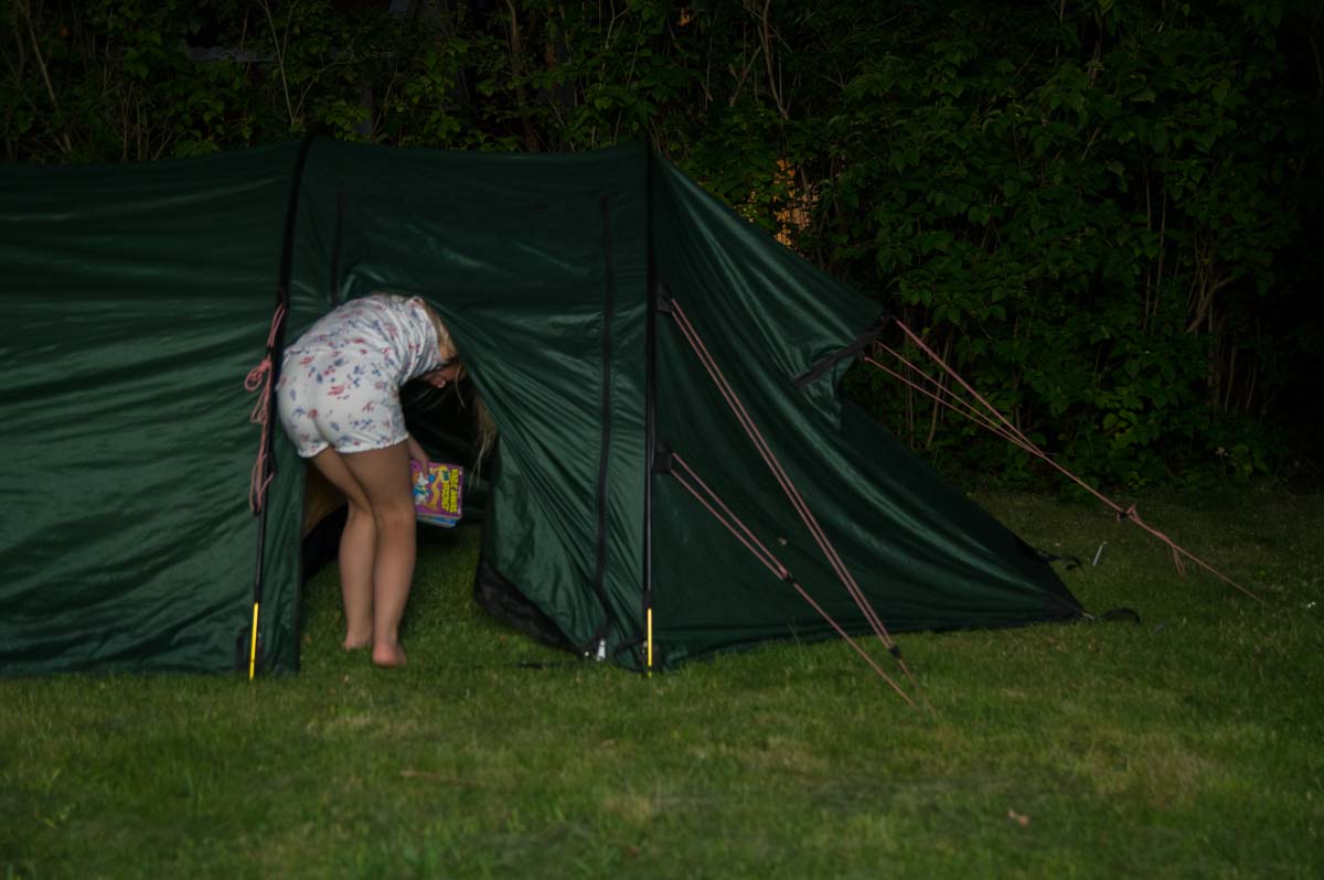 We never got around to going camping this summer. Instead Ingrid has been sleeping in a tent in the garden for a week now.