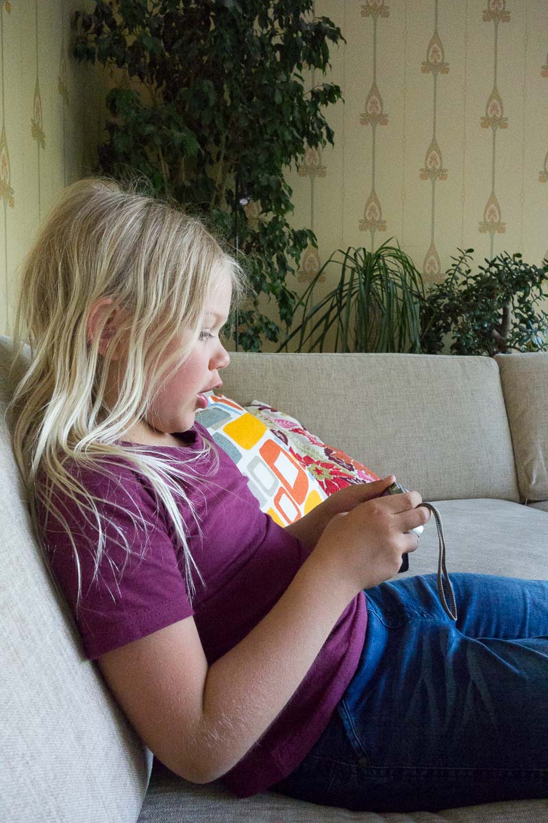 She’s been extending camp life by sleeping in the tent we put up in the garden for her. A sleeping bag, a flashlight, and a pile of Kalle Anka Pocket issues is all she needs to enjoy herself. She has also started talking about wanting a room of her own – part of the charm of the tent may be that nobody else is ever there.