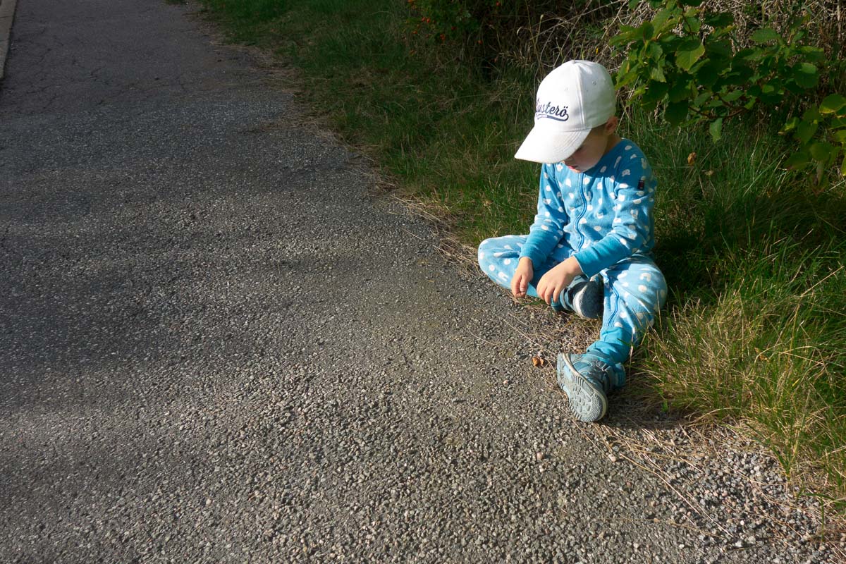 Sometimes pyjama boy gets tired on the way home.