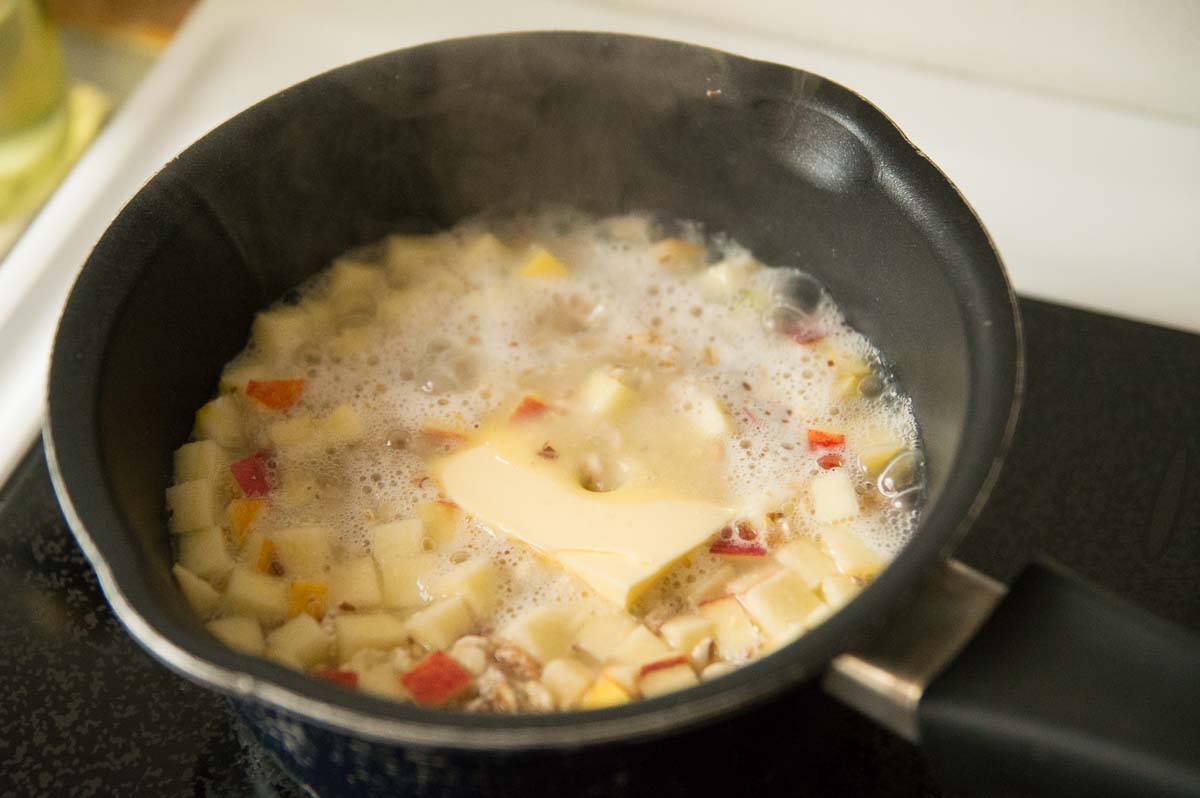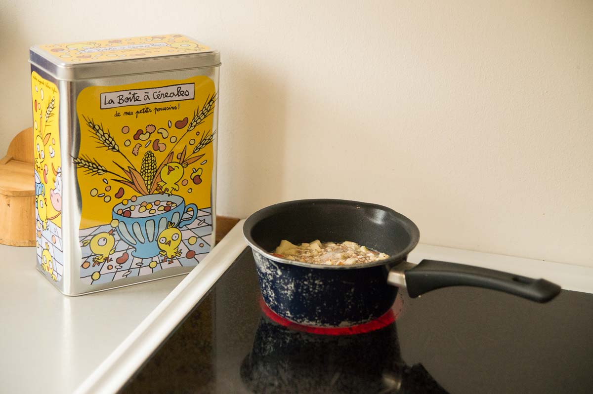 Sometimes I eat my porridge with jam, but there are still fresh Swedish apples to be found in the supermarket so currently I make it with finely diced apples instead. And a generous chunk of butter. Awesomely good.