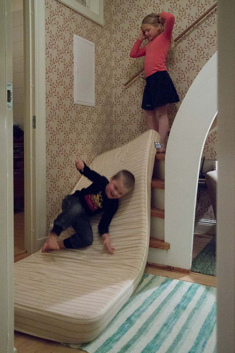 Ingrid has been finger knitting off and on for two years, on the same “rope”. She just keeps adding to it when she feels like it. The rope now measures many metres. The kids laid out on the floor – turns out it easily reaches from one end of the house to another, and then some.