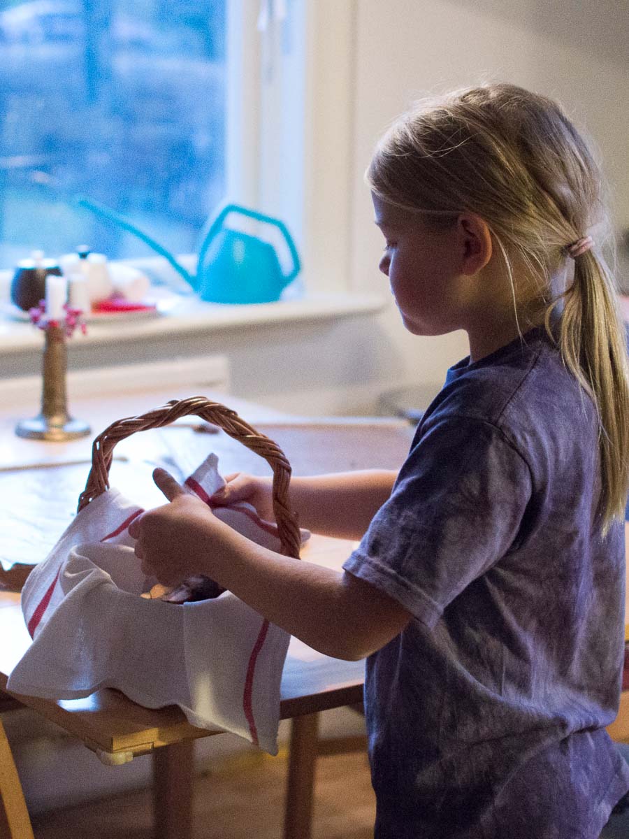 It took absolutely forever for Ingrid. 80 minutes, to be precise. I was so bored and itching to actually do something (other than hover around and be ready to help her when needed, remind her to turn off the stove, etc). I was needed often enough that I couldn’t go off and read a book for example, but not often enough to actually keep me busy. I could perhaps have been even more hands off and let her figure more things out on her own, but everybody was so hungry that I felt I needed to direct her a bit to speed things up somewhat.