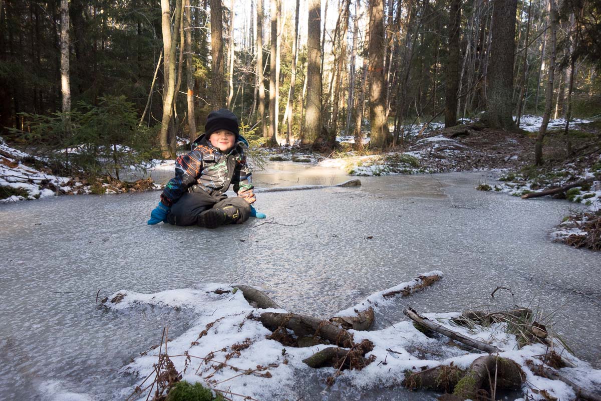 The sun was warm but in shade the ice was still all properly icy. Adrian liked the icy spots best. Wherever there was an icy patch on the path, he chose that side of the path. This place will be very swampy in spring, but now it was a nice large expanse of firm ice.