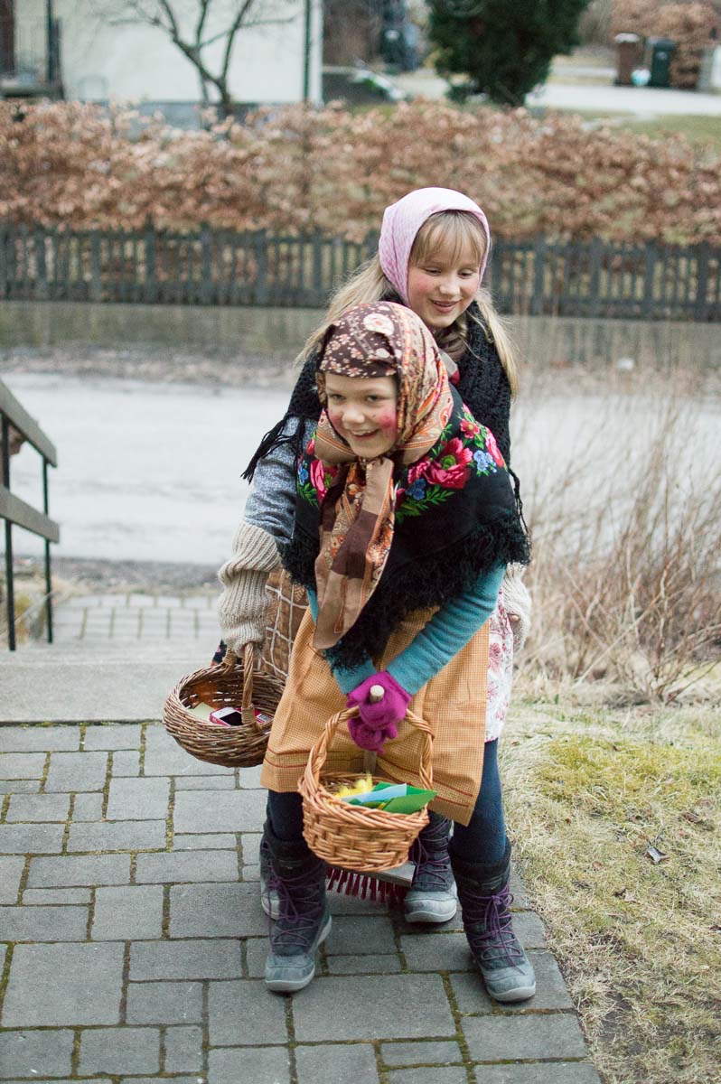Påskgubbe and påskkärringar, about to fly off to Blåkulla.