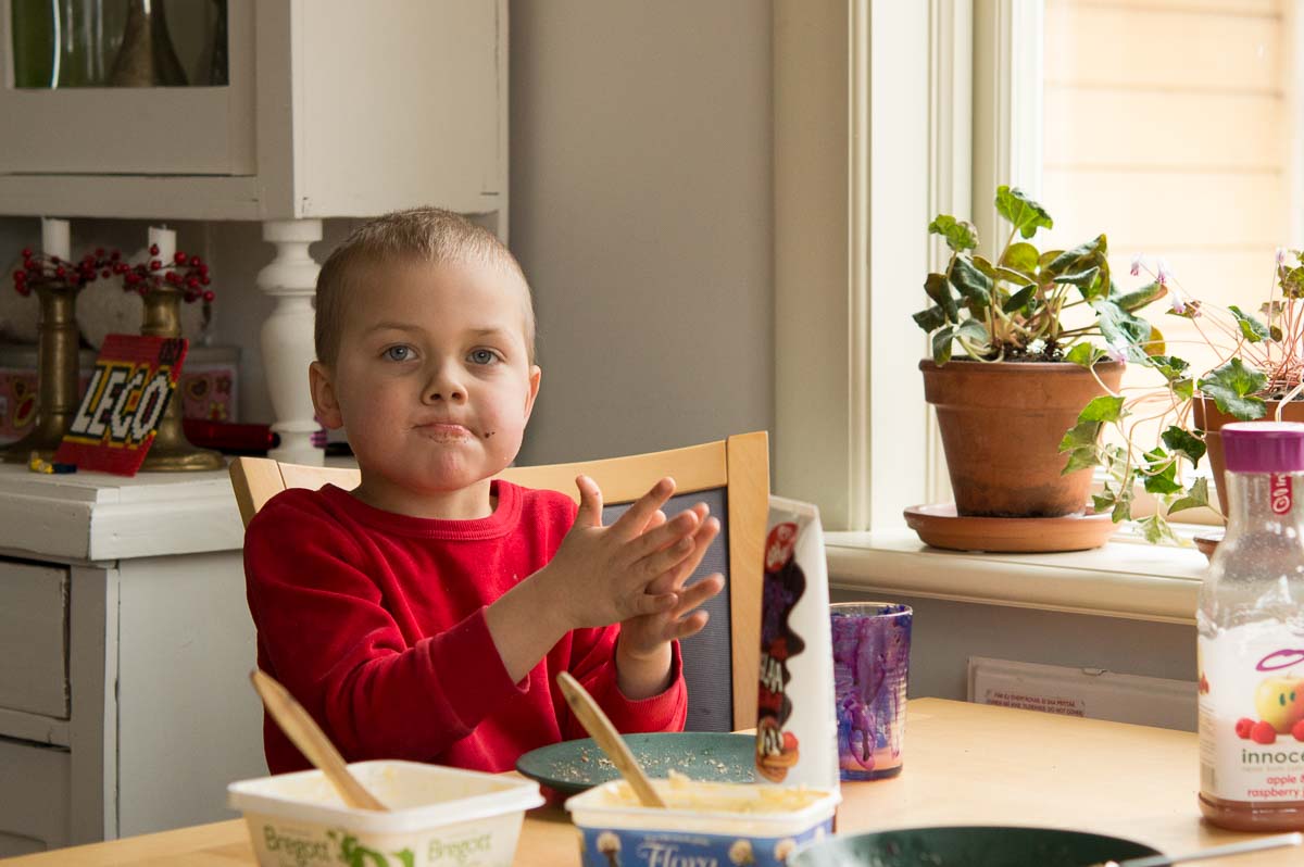 No, we do not have chocolate sauce for breakfast on weekdays. But it does happen that the kids put it on their toast on weekend mornings. This photo is from the future, from Saturday.