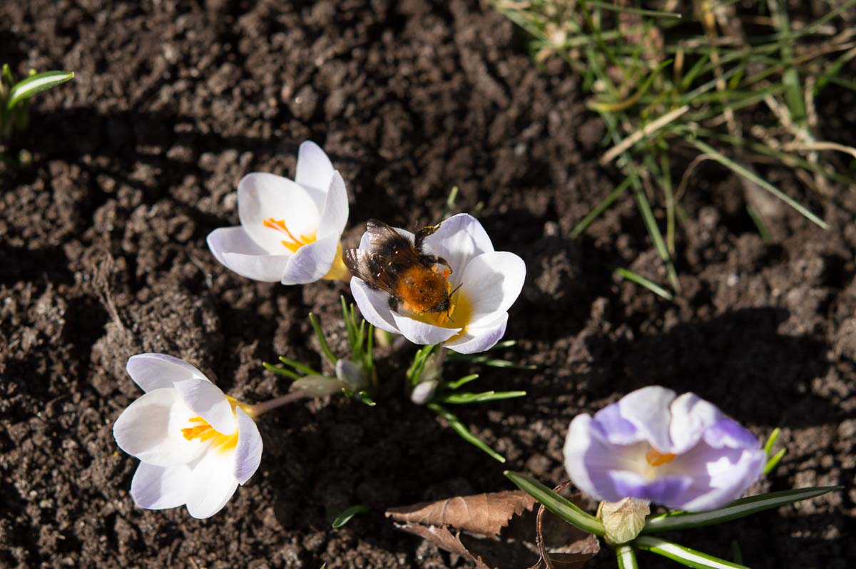 The year’s first bumblebee, who visited every single crocus flower in sight. I’m pleased we had such nice fare to offer to her…