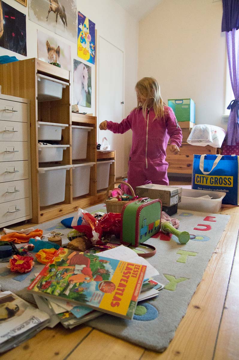 Ingrid and I spent much of the day cleaning out Ingrid’s room – sorting through all the piles of stuff that have accumulated everywhere, throwing away junk and finding appropriate places for non-junk. We took a big box of toys down to the basement, and lots and lots of papers to the recycling bag.