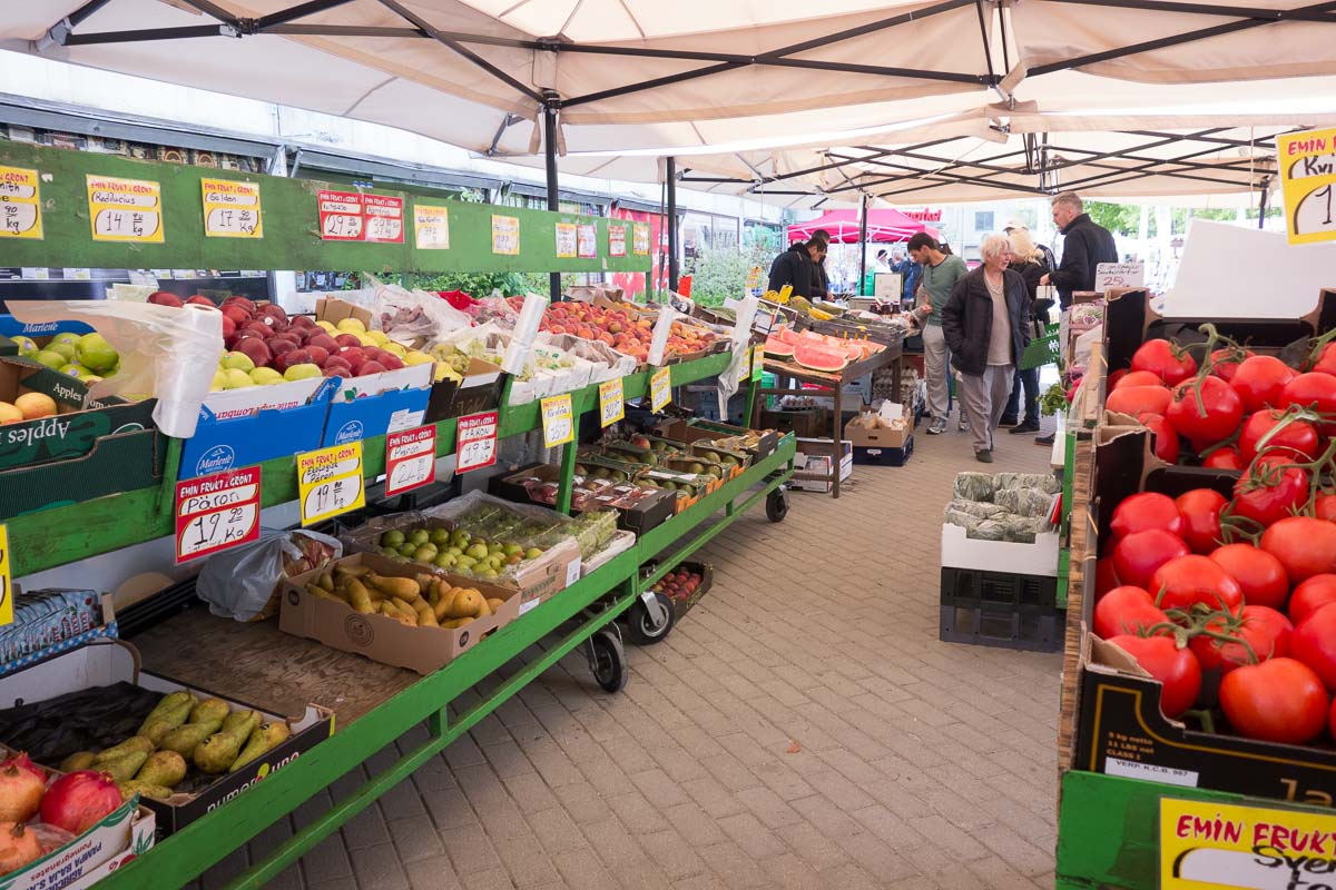 From mid-May until late September, there’s a vegetable stall in the square in Spånga centre, run by a friendly bunch of Turkish guys. They have much better choice, better prices, better customer service and better everything than the supermarket. (Except for spelling.) Between the stall and my vegetable box subscription from Ekolådan, I hardly buy any fruit or veg from the supermarket during summer.