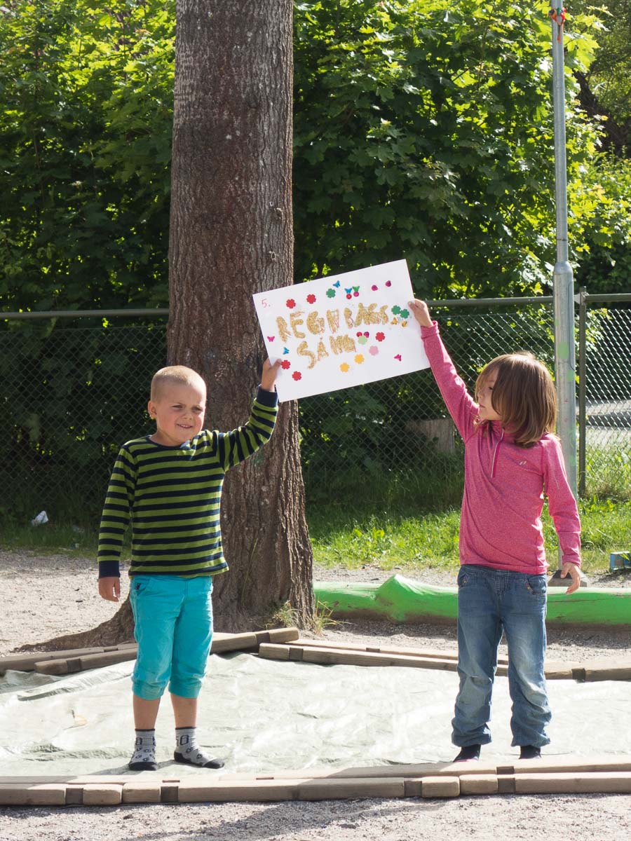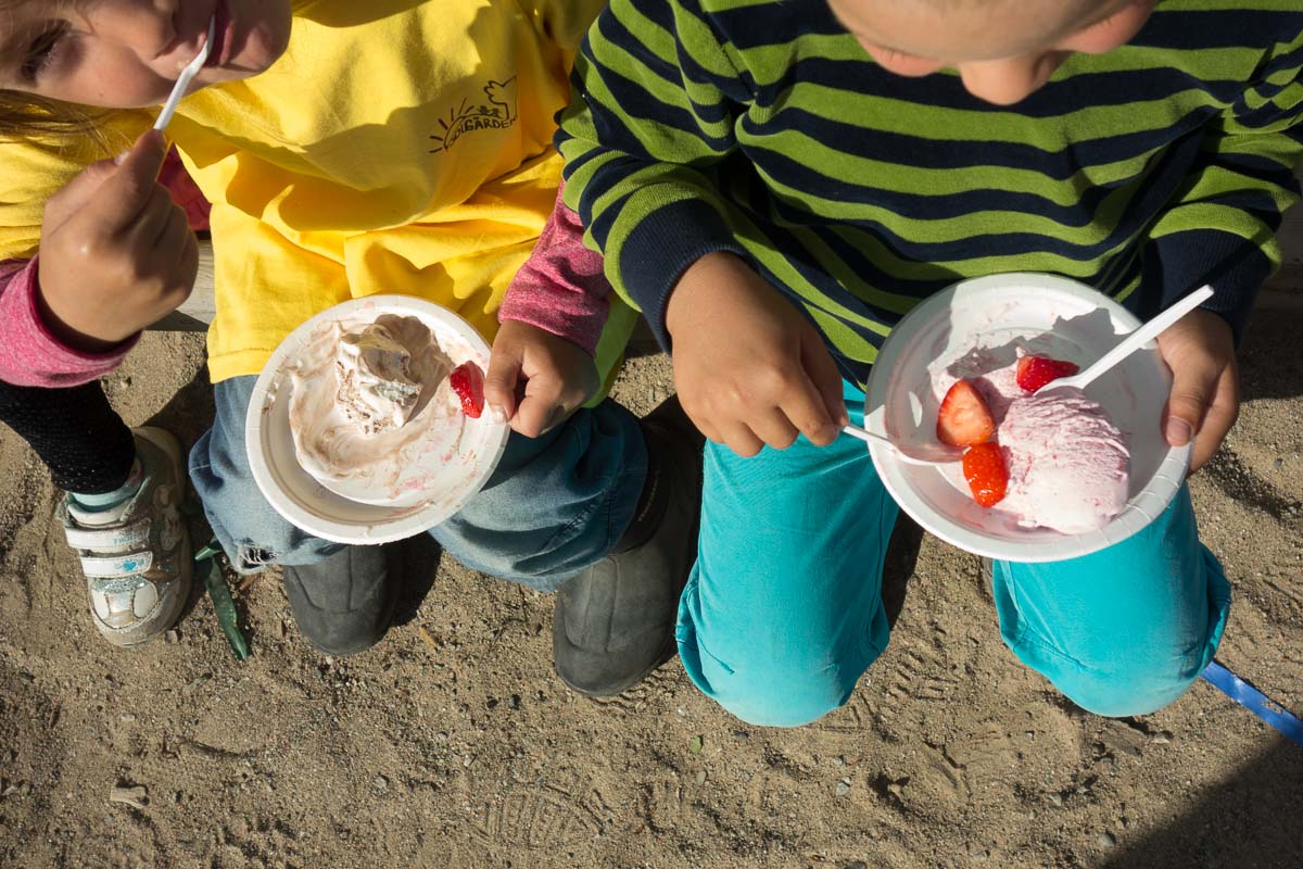 End-of-school summer party at Adrian’s preschool: a show by the kids with songs and other performances, and then ice cream with strawberries.