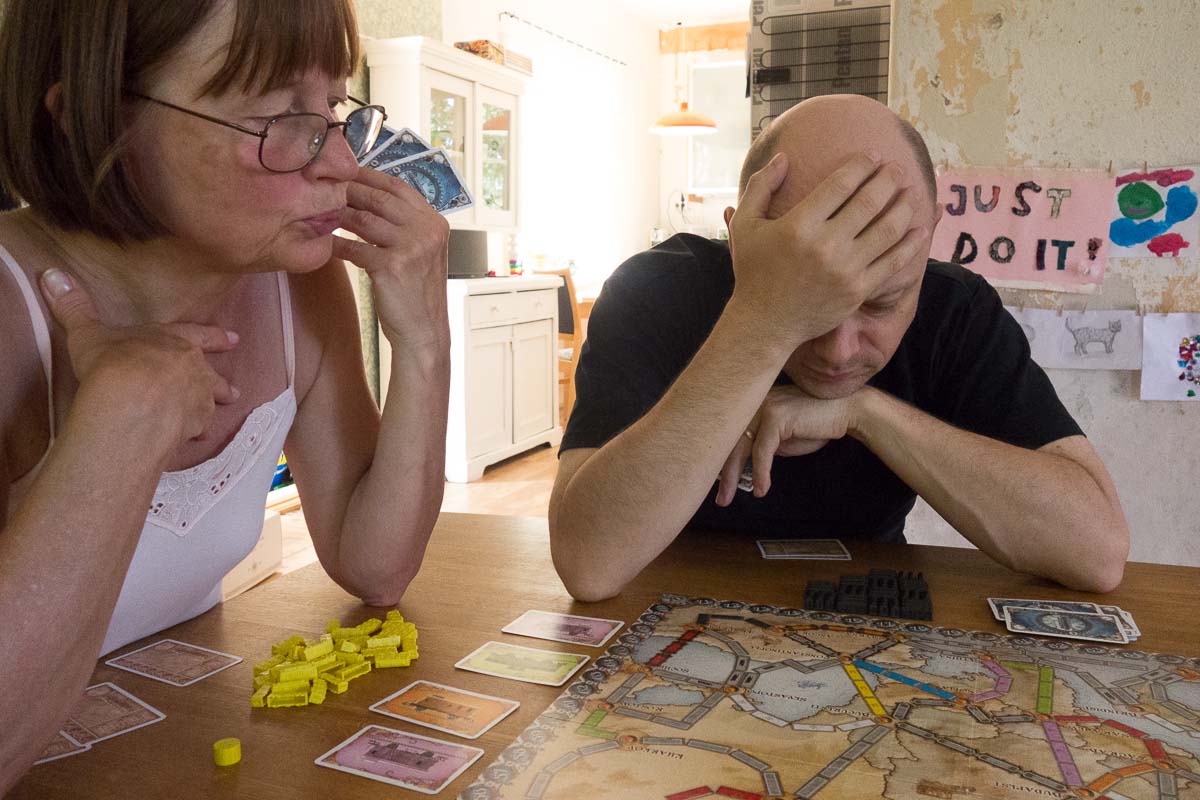 My mum was here for Midsummer. She is almost like Ingrid in her need to be entertained all the time, so we played Ticket to Ride. With four players (us and my mother) it was more challenging than usual, many routes got blocked.